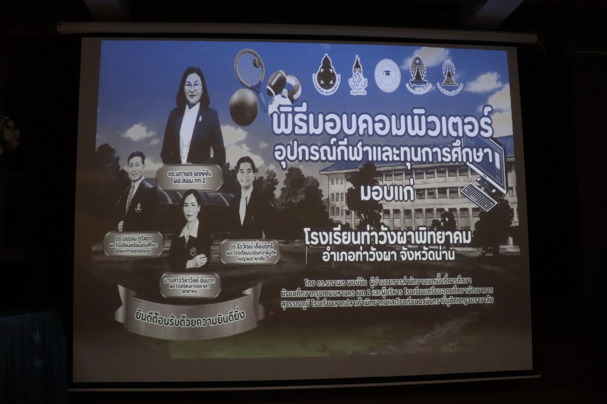 ผอ.สพม.กท 2 มอบเครื่องคอมพิวเตอร์สำหรับจัดการเรียนการสอน ทุนการศึกษา และอุปกรณ์กีฬาให้แก่นักเรียนโรงเรียนท่าวังผาพิทยาคม