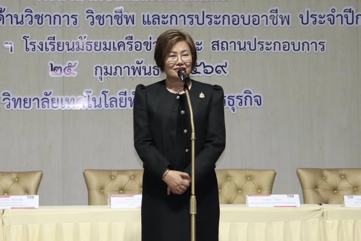 | วันพุธที่ 25 กุมภาพันธ์ 2569 เวลา 10.00 น. ดร.นภาพร พงษ์ขัน ผู้อำนวยการสำนักงานเขตพื้นที่การศึกษามัธยมศึกษากรุงเทพมหานคร เขต 2 เป็นประธานในพิธีลงนามบันทึกความร่วมมือ (MOU) เพื่อพัฒนาศักยภาพการเรียนรู้ ด้านวิชาการ วิชาชีพ และการประกอบอาชีพ กับโรงเรียนมัธยมศึกษาในสังกัดสำนักงานเขตพื้นที่การศึกษามัธยมศึกษากรุงเทพมหานคร เขต 2 ซึ่งมีวัตถุประสงค์เพื่อสร้างเครือข่ายความร่วมมือทางวิชาการและวิชาชีพระหว่างสถานศึกษาและสถานประกอบการ ในการพัฒนากำลังคนให้มีคุณภาพและตรงตามความต้องการของตลาดแรงงาน เพื่อให้การดำเนินการเป็นไปในทิศทางเดียวกัน สอดคล้องกับนโยบายการศึกษาของกระทรวงศึกษาธิการ ที่จะให้นักเรียนได้เรียนรู้และฝึกทักษะประสบการณ์วิชาชีพ โดยมีสถานศึกษาในสังกัดเข้าร่วมจำนวน 15 โรงเรียน ในการนี้ นายสุรเทพ ตั๊นประเสริฐ อดีตรองปลัดกระทรวงศึกษาธิการ และที่ปรึกษาวิทยาลัยเทคโนโลยีทักษิณาบริหารธุรกิจ กล่าวต้อนรับ และนางนงลักษณ์ ตระกูลวงศ์ ผู้อำนวยการวิทยาลัยเทคโนโลยีทักษิณาบริหารธุรกิจ กล่าวรายงานวัตถุประสงค์ ณ ห้องประชุมวิทยาลัยเทคโนโลยีทักษิณาบริหารธุรกิจ |