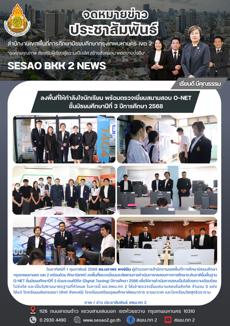 ลงพื้นที่ให้กำลังใจนักเรียน พร้อมตรวจเยี่ยมสนามสอบ O-NET ชั้นมัธยมศึกษาปีที่ 3 ปีการศึกษา 2568
