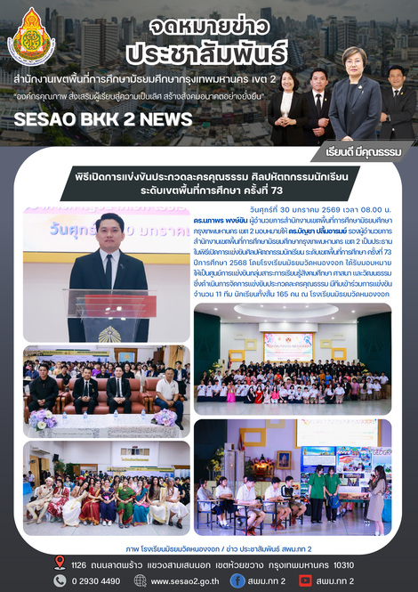 พิธีเปิดการแข่งขันประกวดละครคุณธรรม ศิลปหัตถกรรมนักเรียน ระดับเขตพื้นที่การศึกษา ครั้งที่ 73